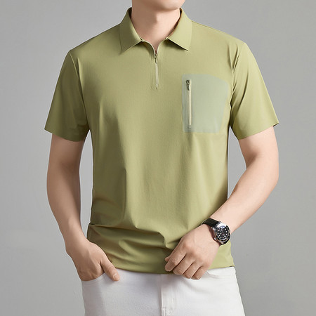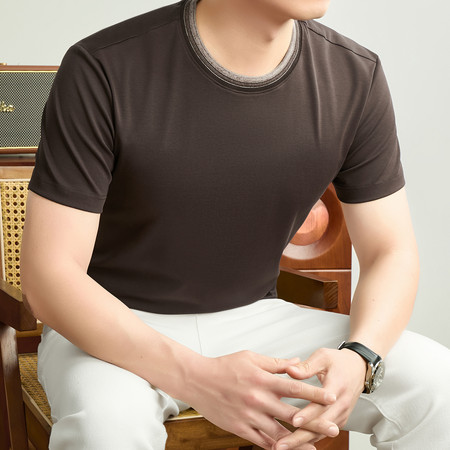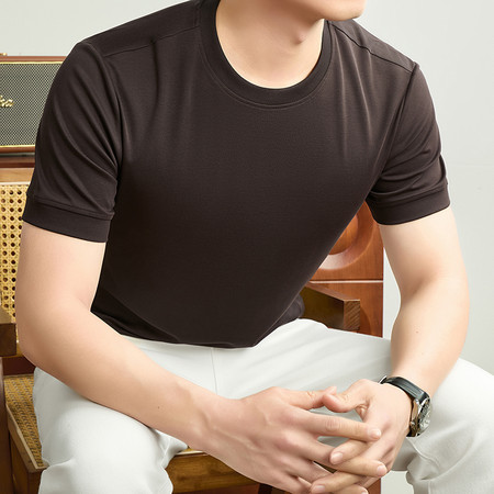 【2026新款短袖】t恤男夏季圆领打底衫半高领丝光棉半袖桑蚕丝V领纯棉翻领polo衫冰丝短袖纯色中年立领体恤